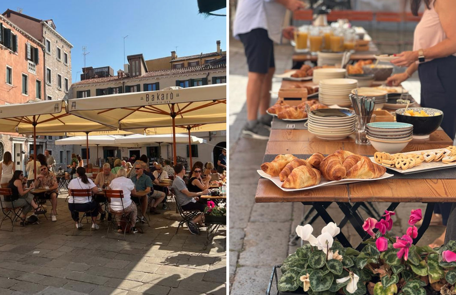 Complice il bel tempo in questo ottobre che sa di giugno, abbiamo potuto organizzare una serie di eventi, attività, pranzi e cene all'aperto. Nelle immagini qui sotto siamo da Bakarò per un coffe break a Campo Santa Margherita in una delle zone più belle della città, il sestiere di Dorsoduro, tra i luoghi più vivi di Venezia, con le pescherie e i fruttivendoli tipici rigorosamente a bordo di imbarcazioni.